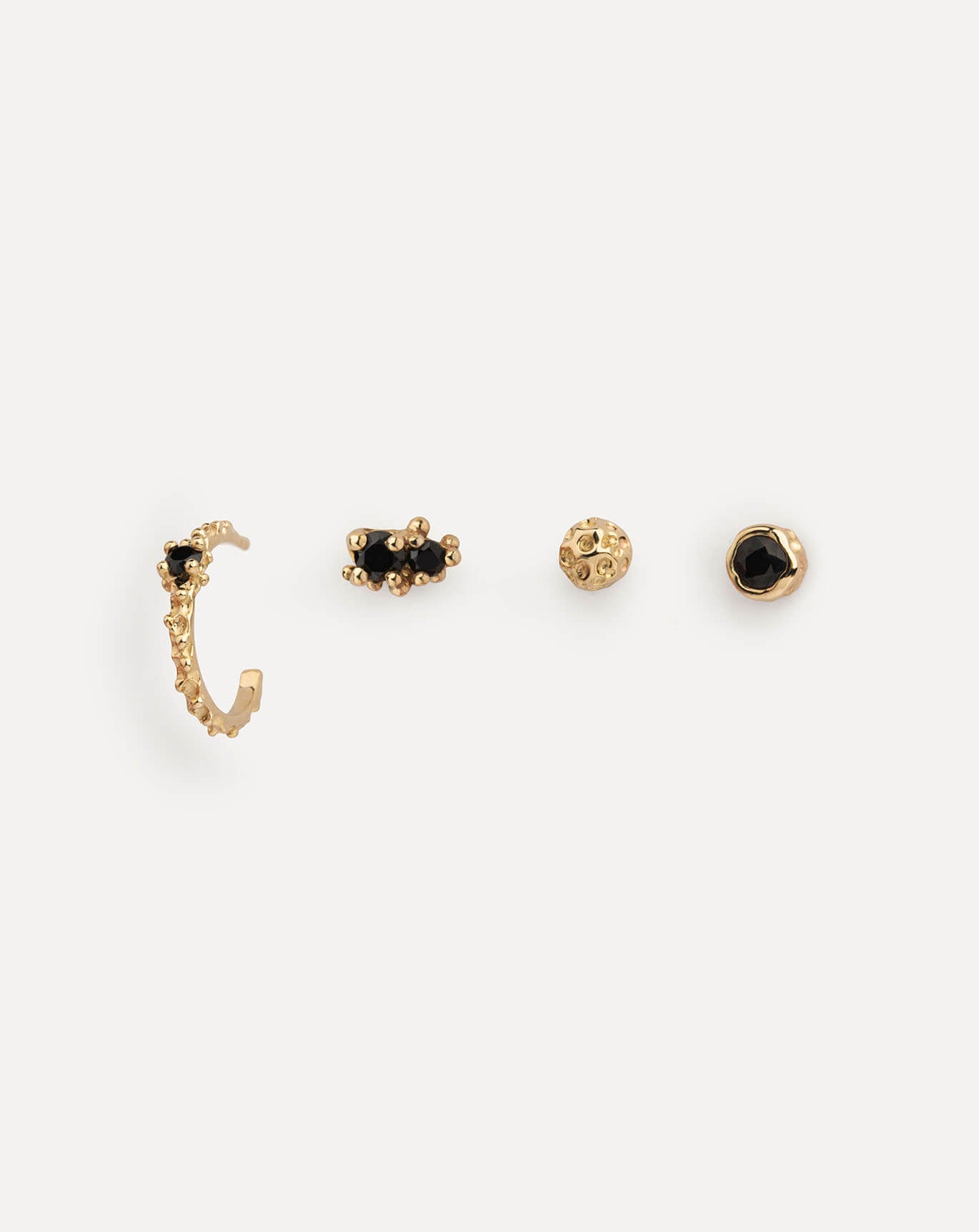 – Set of 4 individual earrings, designed to be worn together or mixed freely